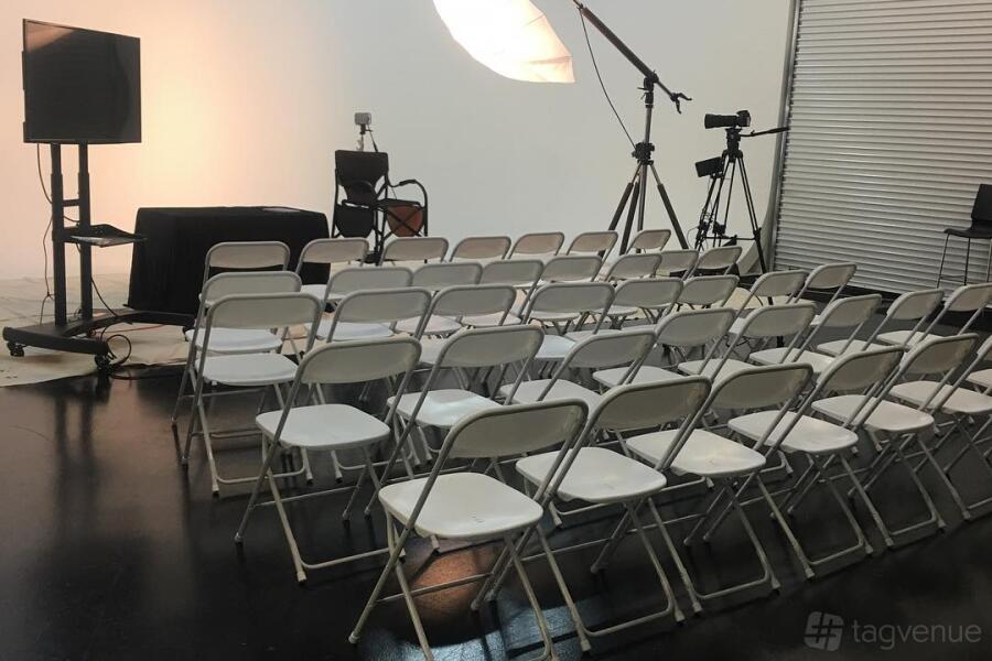 The studio is great for photoshoots, as it has professional lighting. The space also offers a variety of backdrops, from white background to green screen.