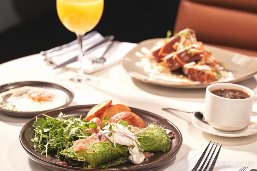 The Bar & Lounge is a space with a maximum capacity of up to 60 guests. It is a shared area with open access for everyone. The style of the interior design is modern, and the space has a beautiful view through big windows.