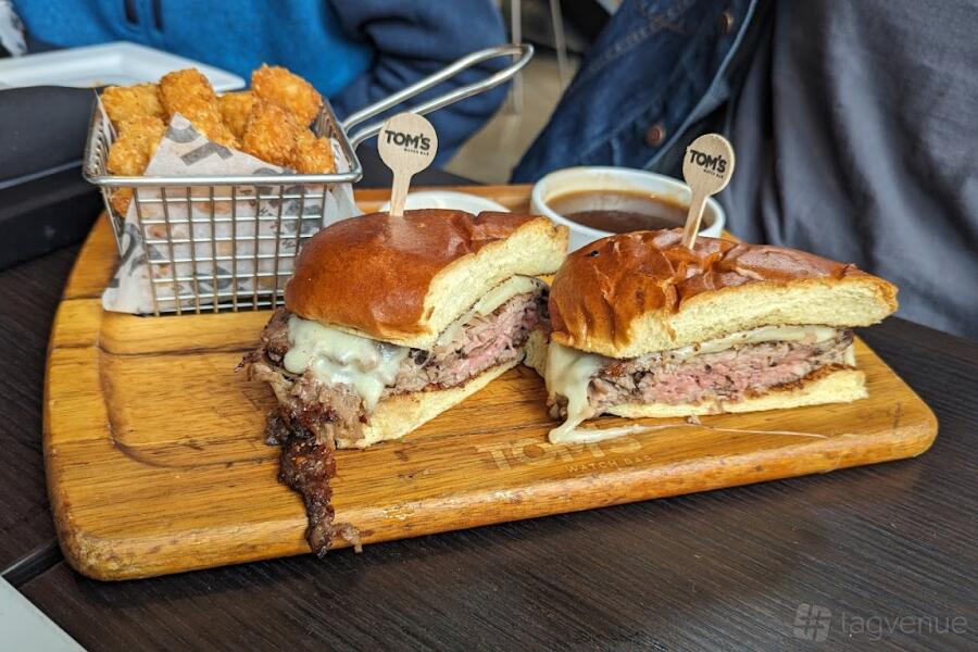 Indulge in a diverse menu featuring delicious burgers, wings, tacos, and more, perfectly paired with our wide selection of drinks. Whether you're planning a casual get-together or a special event, Tom's Watch Bar has over 10 private rental spaces to accommodate your needs. Join us for an unforgettable experience where great food, drinks, and sports come together!