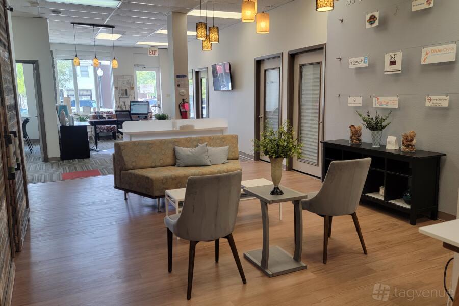 The Band Room is the perfect location for a collaborative meeting or gathering of friends. This flexible space contains modular furniture to accommodate multiple room styles and seats up to 15 people. The room is equipped with a whiteboard, 50" Smart TV, Chromecast and WiFi. Free coffee and water, plus access to a full kitchen. All within walking distance of several local restaurants and nightlife in Fort Worth's historic Near Southside.