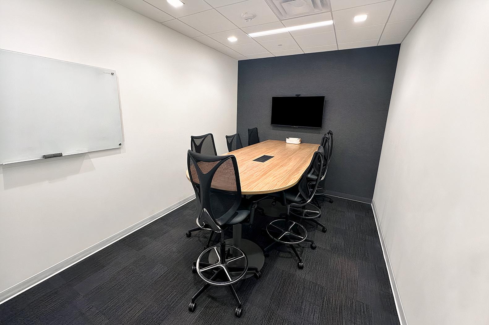 Our 7-person meeting room at Hall Park in Frisco offers a professional and comfortable environment, ideal for small team meetings, brainstorming sessions, or client presentations. Situated within a modern and well-appointed business venue, this room is designed to provide all the necessary amenities for a productive experience.