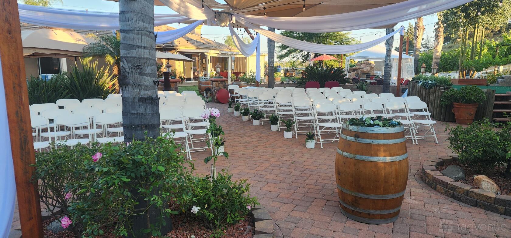 Nestled in the heart of Riverside County, California, just a short scenic drive from Orange County, our vineyard venue offers an idyllic setting for a variety of events. Surrounded by picturesque rolling vines, the venue exudes charm and elegance, perfect for creating unforgettable memories.