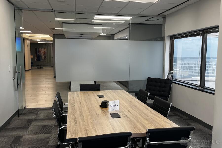 Private conference room space for 10 located on the 9th level and is equipped with conference telephone, 75 inch tv/monitor, WIFI, and breakout space, if needed, with onsite staff to assist you during your reservation.