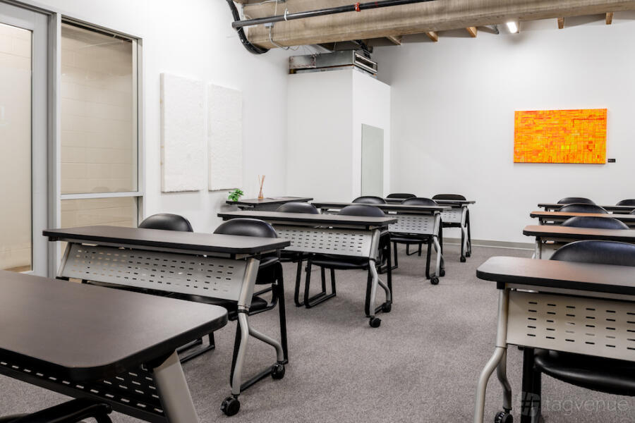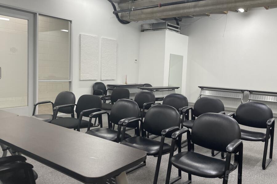 The space has capacity for 100 people. The event space provides seating and tables for 30+people. The Kitchenette has counter and high top seating for 16 people.