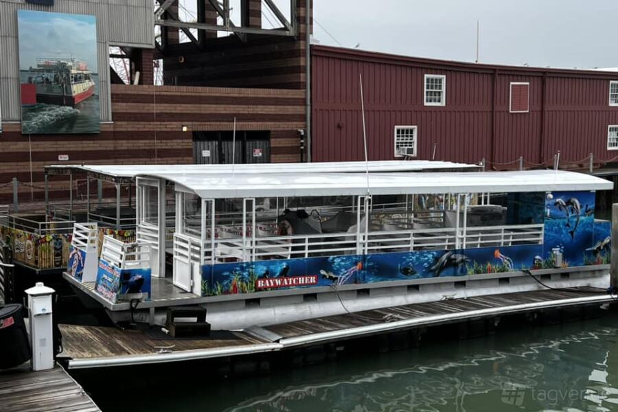 Introducing our premier vessel at Baywatch Dolphin Tours, a captivating open-air pontoon designed for the ultimate dolphin-watching adventure. With a spacious capacity of 49 guests, this boat promises a 45-minute guided historical tour of the picturesque Galveston Harbor, seamlessly intertwined with the thrill of observing dolphins in their natural habitat.