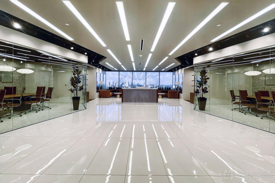 Architecturally, the space boasts a sleek, contemporary design with an emphasis on light and open areas that foster a bright and inviting atmosphere. Elegant decor and a sophisticated setting are complemented by state-of-the-art amenities including high-speed internet, cutting-edge conference technology, and fully-equipped workstations.