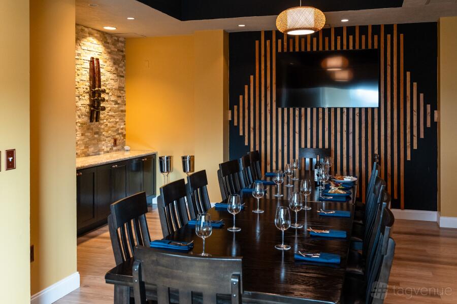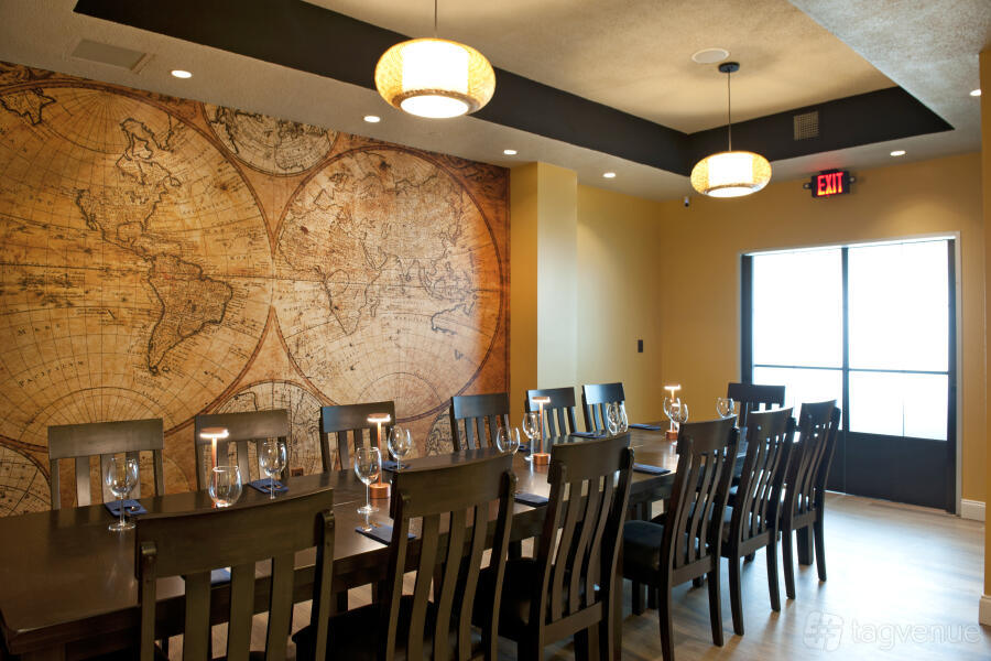 Our semi-private main dining room offers plush seating and exposed brick walls, creating a cozy atmosphere. With seating for up to 65 guests, the space is approximately 1,170 square feet.