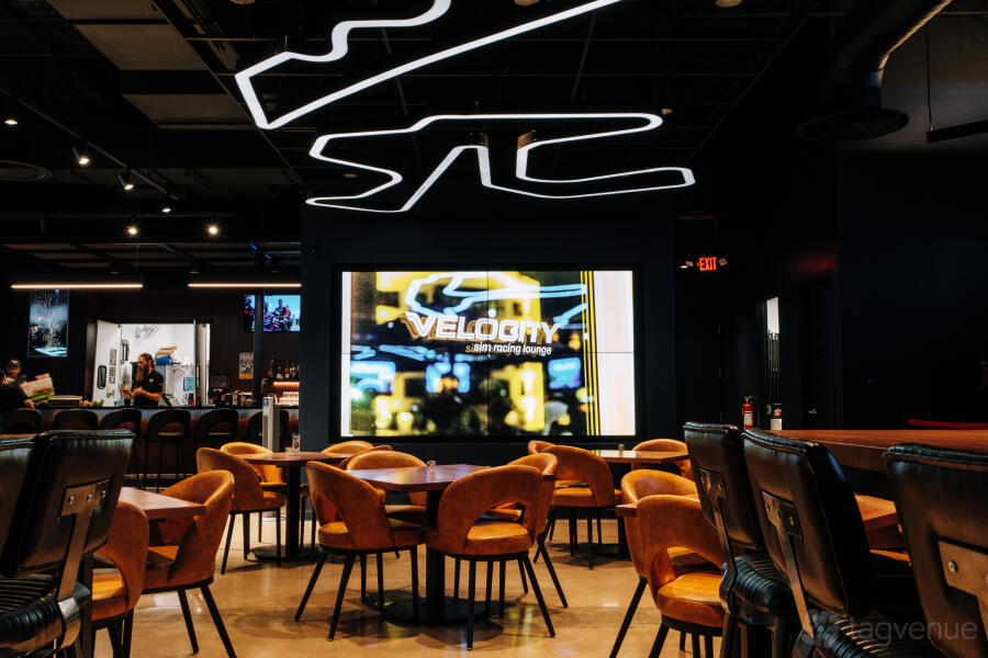Velocity | Sim Racing Lounge is a first of its kind entertainment destination for the Texas market. Velocity features a full bar, kitchen, and motion-enabled racing simulators giving guests the thrill of driving on the racetrack in a chic and upscale motorsports inspired venue.