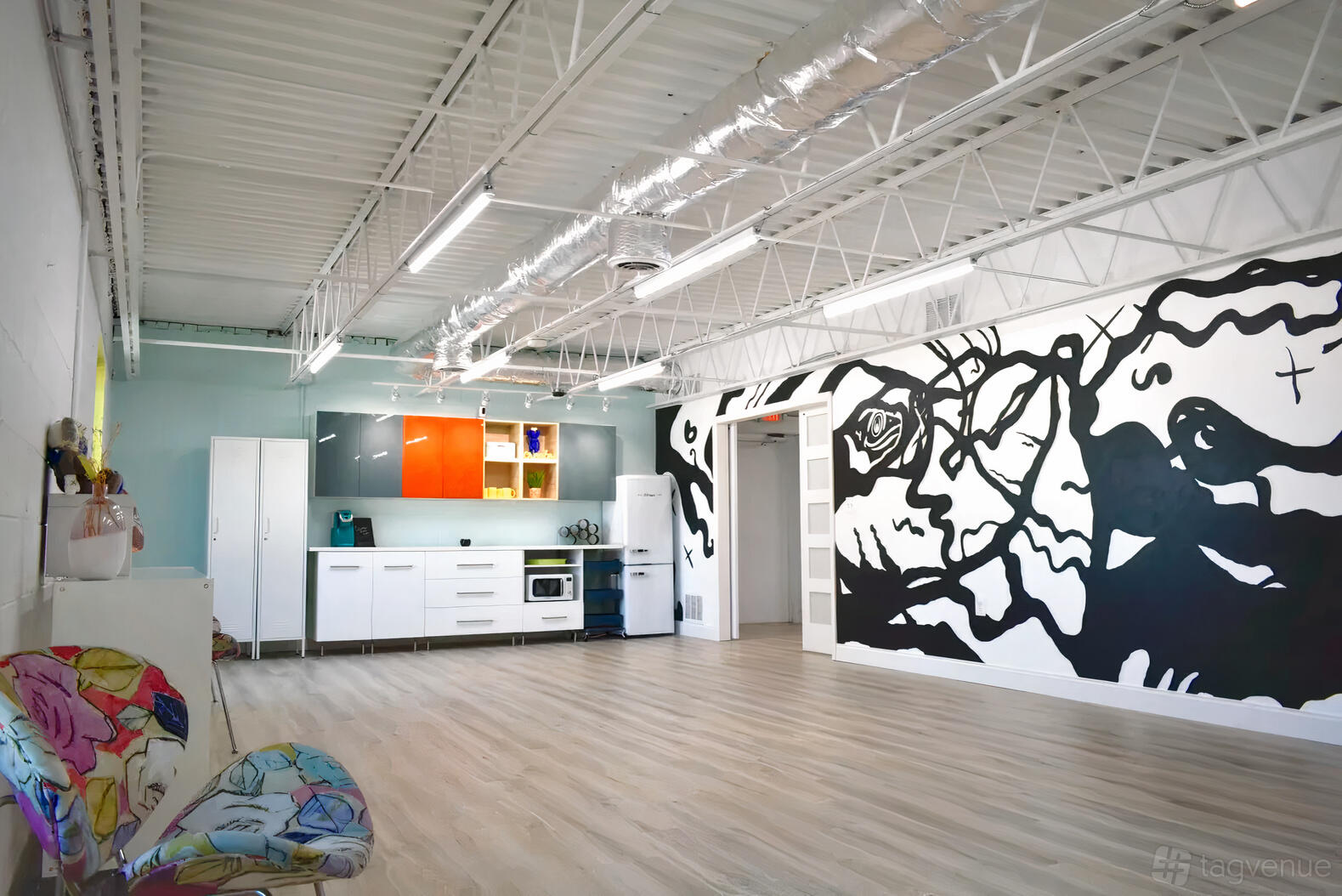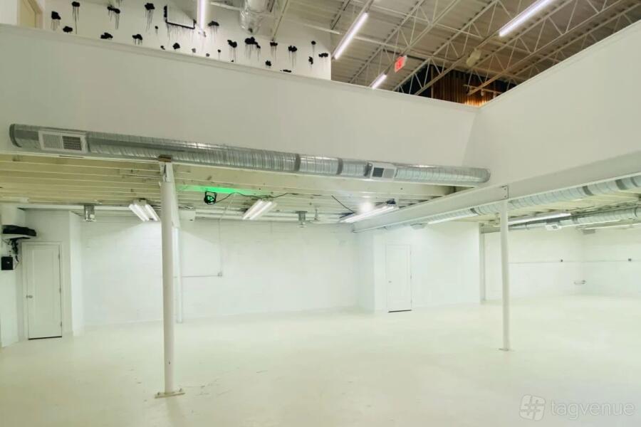 The loft is equipped with practical amenities like a mini fridge, microwave, and Keurig coffee maker with various blends to keep guests refreshed. A unisex bathroom, garment rack, professional clothing steamer, and two multicolored stools make it well-suited for photo shoots and creative projects. High-speed WiFi and a Bluetooth surround sound speaker enhance the experience.