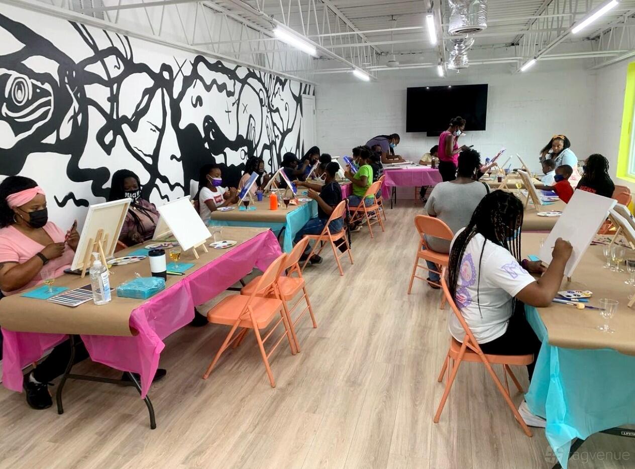 Creative Saints Loft in Hyattsville, MD, is a bright and modern space designed for both professional and creative gatherings. The loft features abundant natural light, a 70″ Smart LED TV with HDMI, and seating for up to 20 people, making it perfect for meetings, workshops, or presentations. Six 6ft rectangular tables and a white erase board add flexibility and functionality.