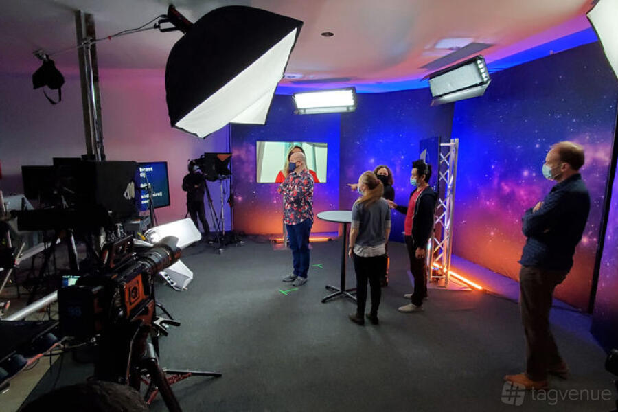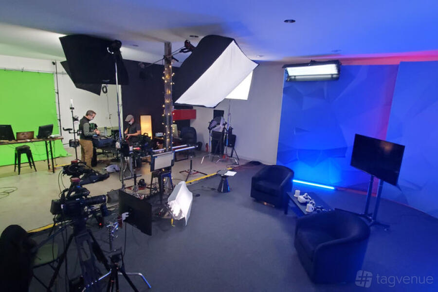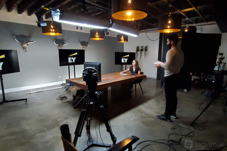 The sleek design creates a welcoming atmosphere and complements a wide range of projects, from commercials and interviews to podcasts and content creation. Designed to support seamless production workflows, this turnkey space is fully equipped and ready for both audio and video needs.