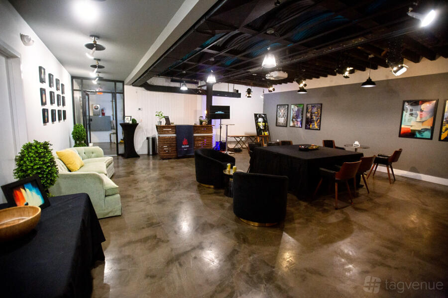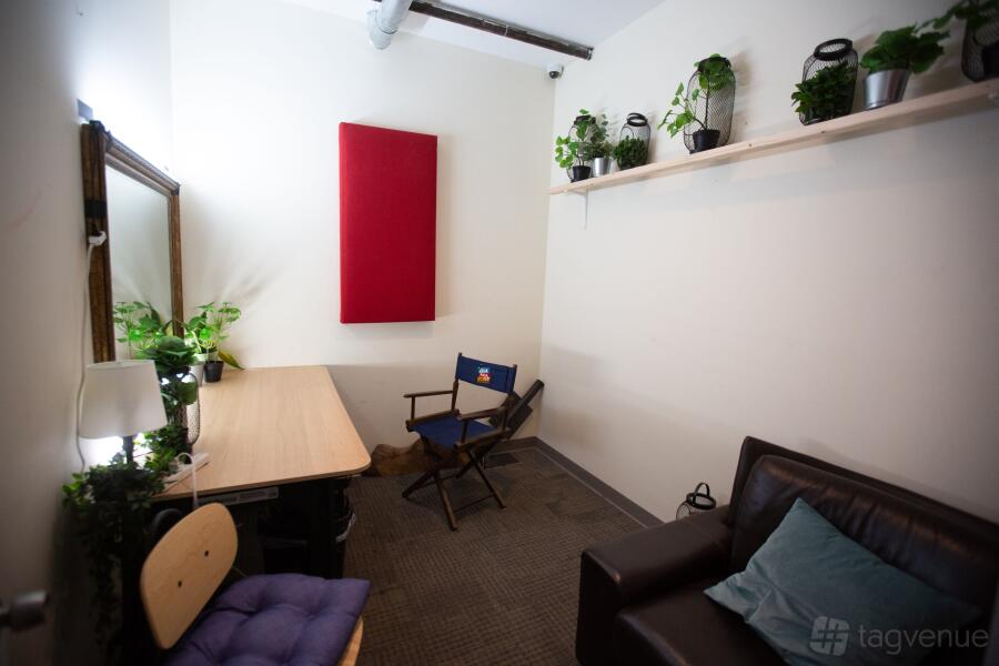 This 220 sqft modern, open-concept space is perfect for creative productions, offering a clean, minimalist backdrop ideal for podcasts and video recording. The soundproof environment and blackout blinds ensure full control over both sound and lighting, making it suitable for any type of shoot.