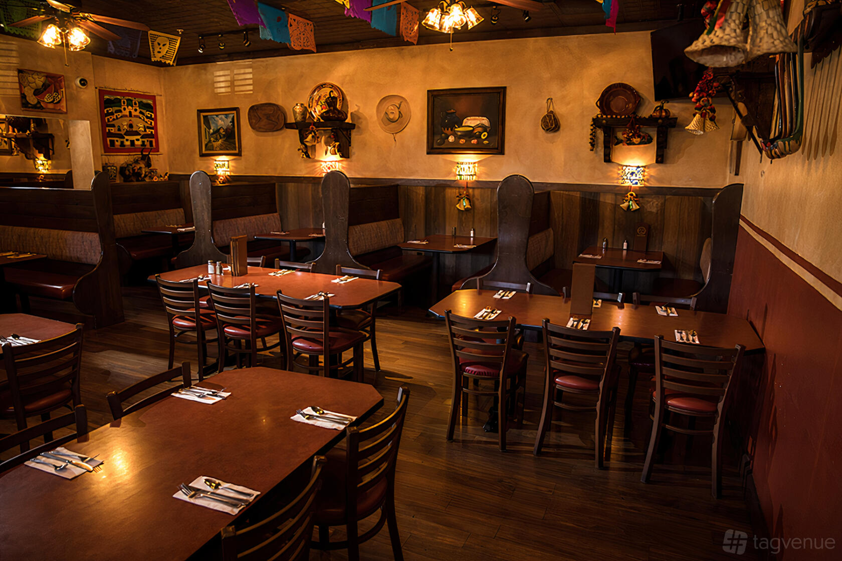 As you walk in, you'll find yourself immersed in the warm and vibrant ambiance, adorned with traditional Mexican decor. The cozy interior is an elegant fusion of beautiful colors and dark wood, evoking the classic charm of Mexico.