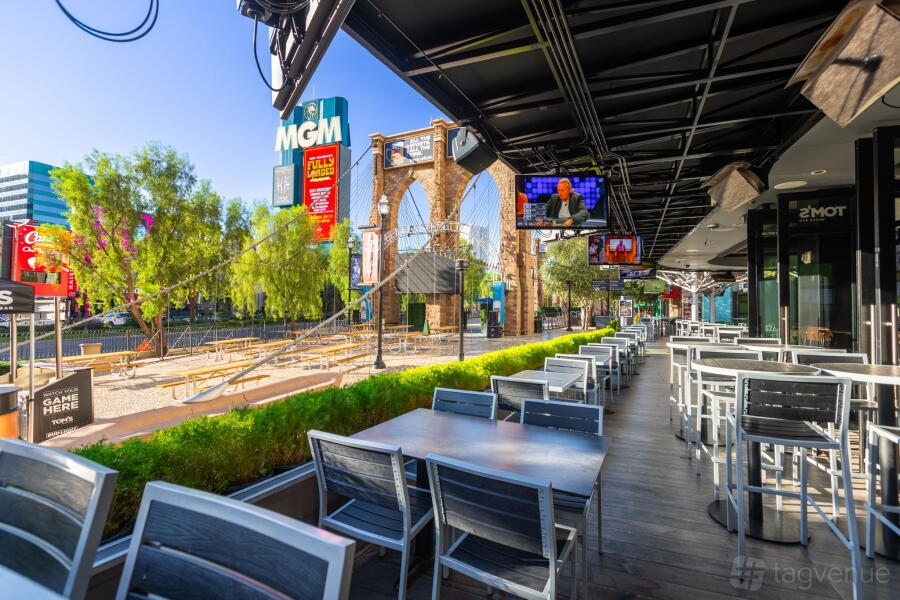 Located in the iconic NYNY Casino & Hotel, Tom’s Watch Bar offers an unbeatable off-site event space right in the heart of the action. As one of the few venues with a patio facing the legendary Vegas Strip, it’s the perfect setting for any gathering.