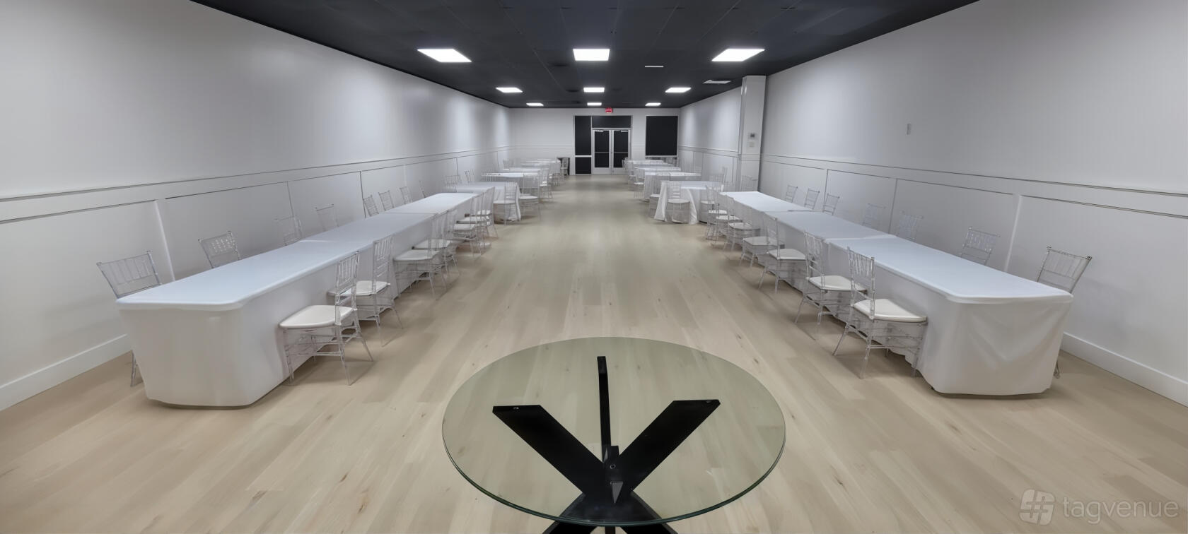Our event space in Lewisville, Texas features 3,000 square feet of customizable space, accommodating up to 100 guests. With its sleek, all-white interior and open layout, the venue is ideal for a variety of event styles, from formal receptions to casual gatherings. The space comes equipped with essential amenities, including tables, chairs, Wi-Fi, and a fully equipped kitchen to support your event needs.