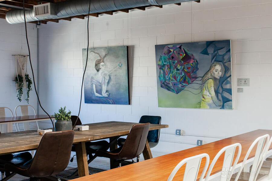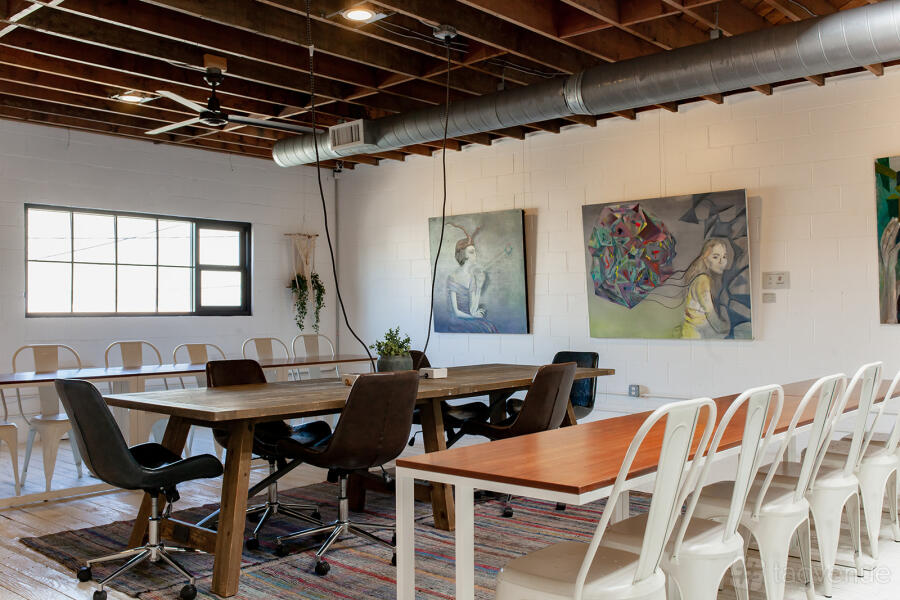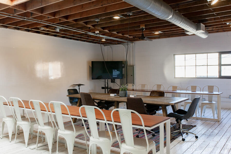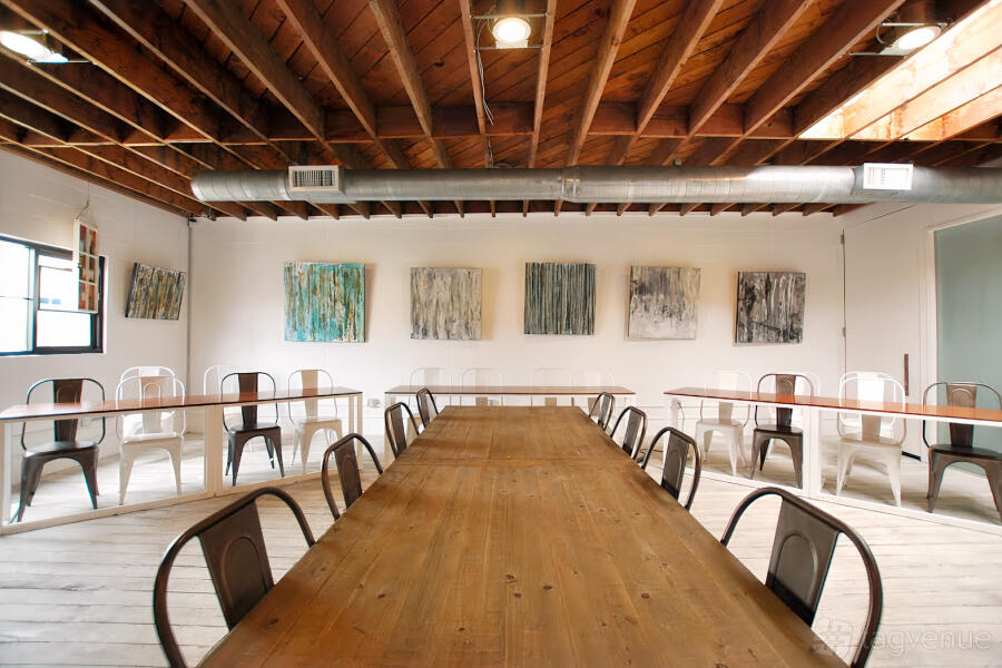 The Gallery’s minimalist industrial aesthetic is defined by white brick walls, polished concrete, and vaulted wood beam ceilings. Encompassing two levels with multiple rooms, the indoor/outdoor space lends itself to a myriad of event formats. Let it set a fresh, contemporary tone for your workshop, art exhibit, baby shower, or product launch.