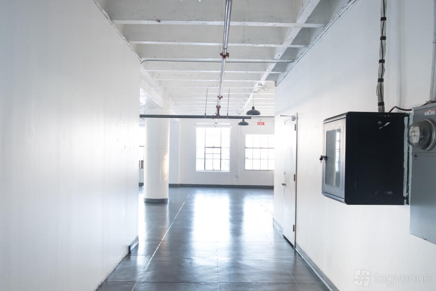Thanks to large windows and a great location, the space is filled with natural light from outside. Modern and minimalistic finishes will suit photoshoots, presentations, or even a fitness session.