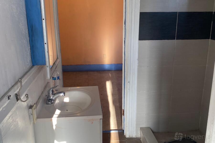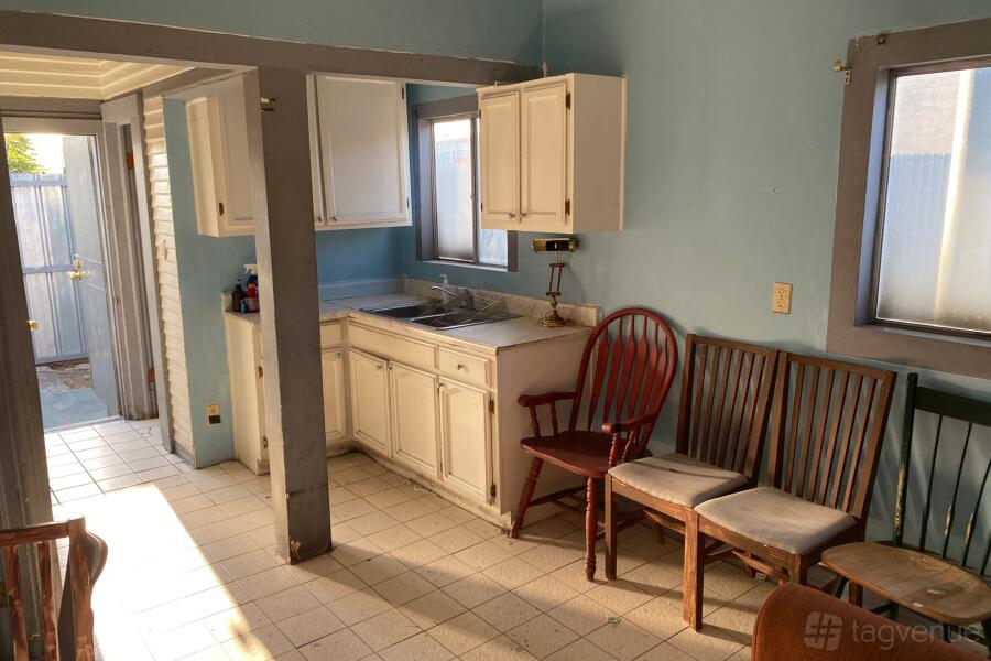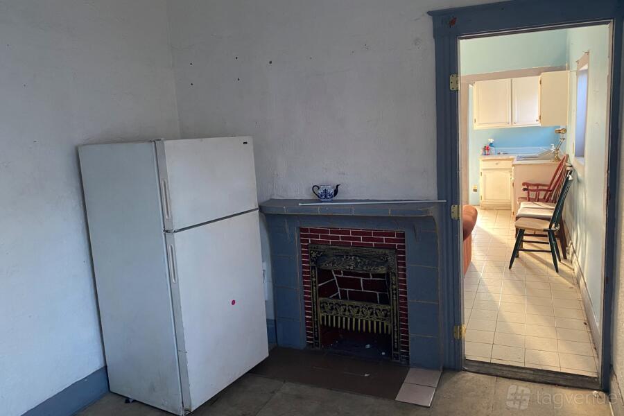Our Downtown 163 Apartment is a 550 square feet, 2 bedroom, 1 bathroom house. There is a basement, front porch, and huge industrial backyard with truck-loading doors.