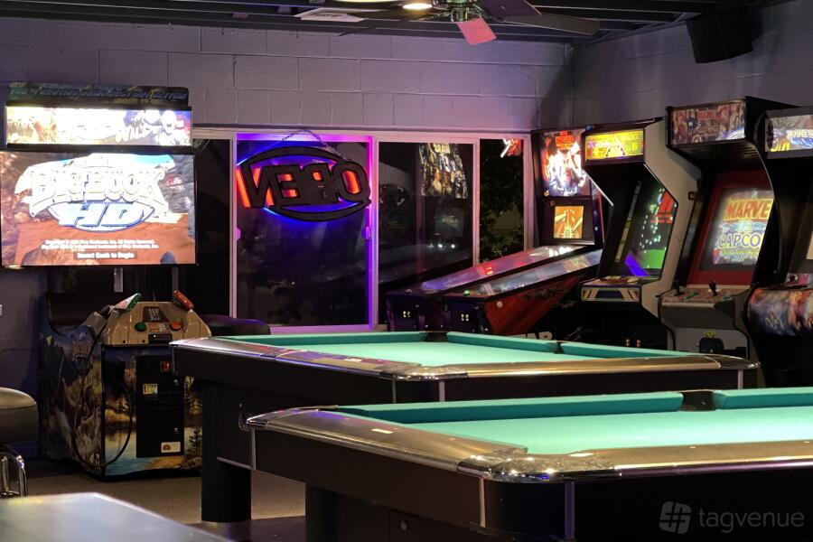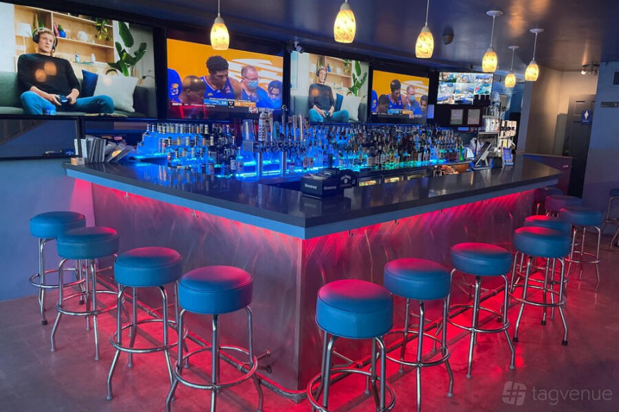 Blue Moon Lounge's upstairs area is the perfect spot for socializing with up to 50 guests. The space features fully-equipped bar and gaming machines, including billiards and more.