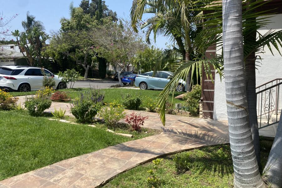 This charming outdoor area has huge fruit trees, a grassy backyard, and a vast balcony overlooking Beverly Hills, West Hollywood, Hollywood Hills, Downtown, Culver City, the mountains and even the Hollywood Sign!