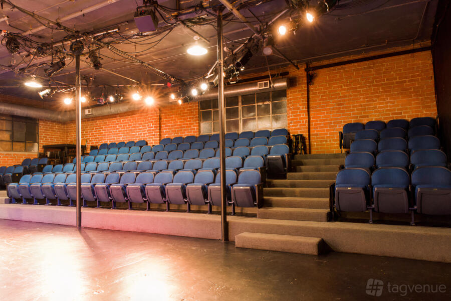 The Mainstage is a fully equipped traditional 99-seat space with a modified thrust and dressing room space for up to 24 actors.