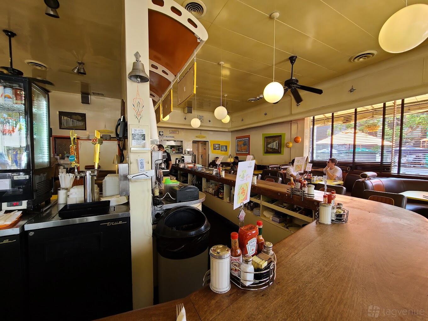 After you've decided what you'd like to eat, sit back, relax and take in our fabulously funky retro-diner interior.. The vibe is pretty laid-back, and we have an amazing mix of guests. On any given day, you'll see hipsters next to grandmas, Hollywood moguls to monks; even a movie star or two! Snag a booth or a spot at the counter for indoor dining. Love the great outdoors? Grab an streetside table and enjoy the bustling boulevard, or dine on our relaxed, covered, dog-friendly covered patio.