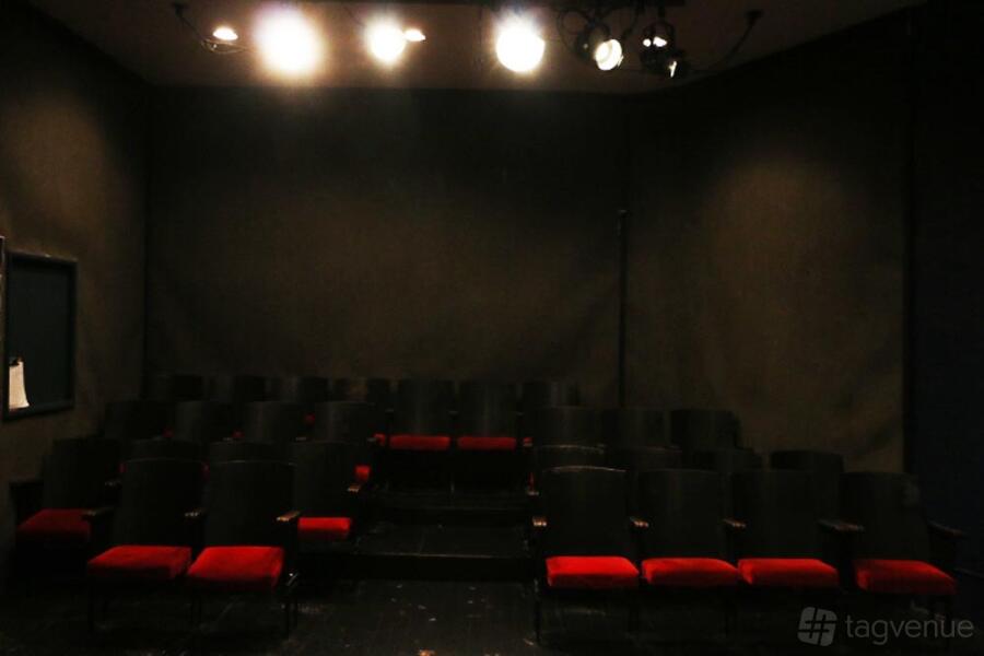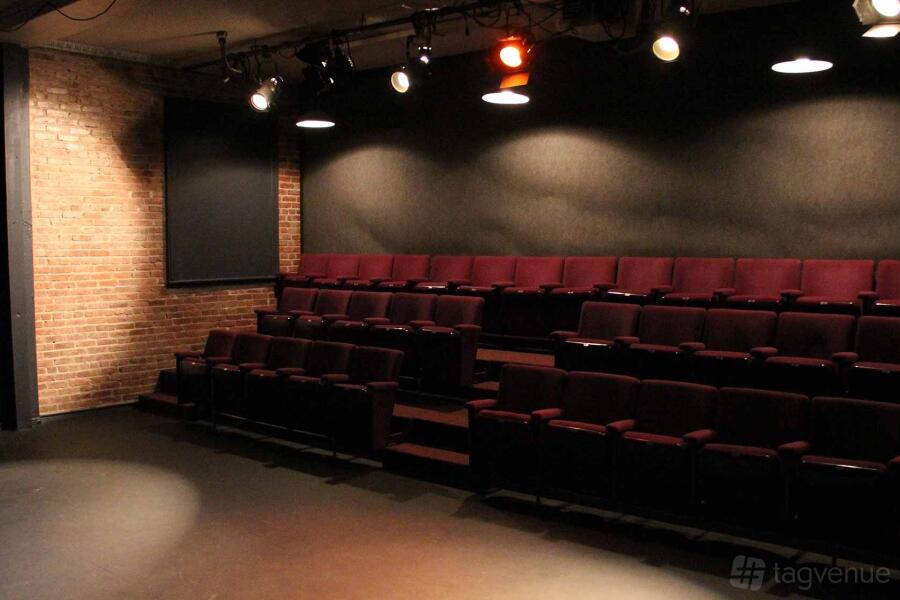 Studio A is a black-box performance space with 48 seats and a 30-foot-wide by 19-foot-deep stage. There is a backstage area and tech booth available for performance rentals. The studio can also be rented out as a Screening Room.