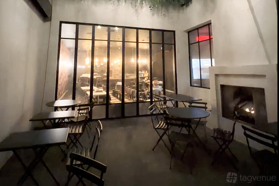 The Atrium is open-air patio featuring a fireplace and floor-to-ceiling windows which connect to the dining room that can be closed for privacy.