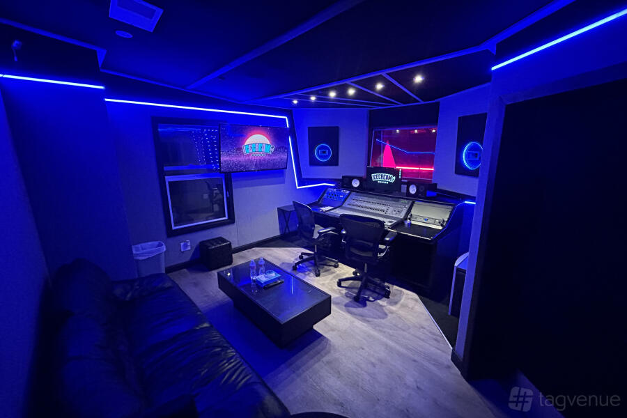 #1 rated recording studio in Downtown, Los Angeles. Welcome to Studio B! Our penthouse recording suite in the heart of Downtown Los Angeles with a Control 24 console, the Tube Tech CL1B compressor, a vocal booth, and beautiful views of the city, along with other top quality recording gear. Many clients claim our studio B to be our best sounding room, tuned to perfection, with color changing lights to maximize your creative vibe.