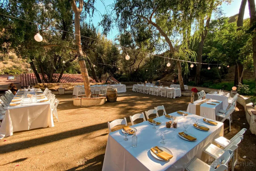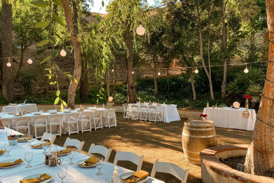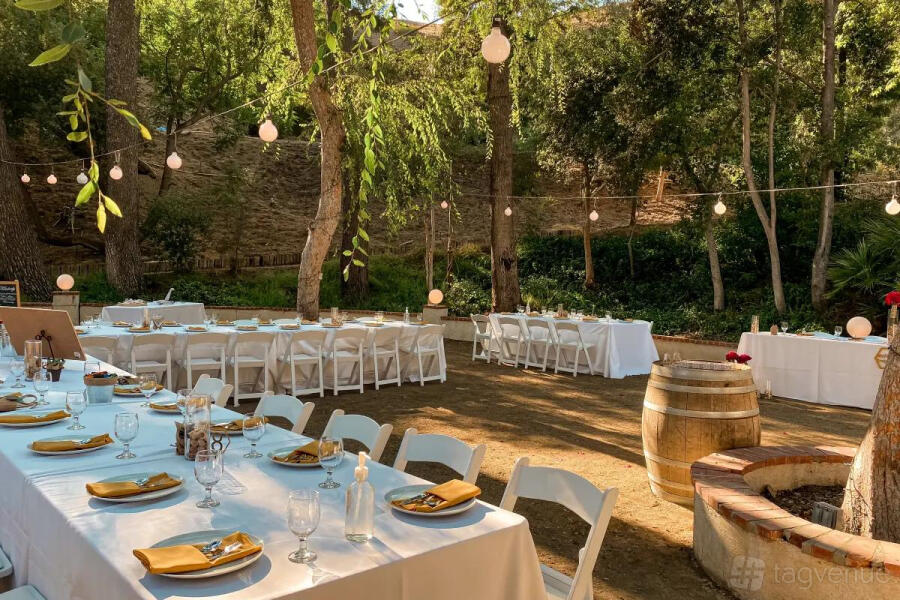 The Citrus Grove is a one-of-a-kind outdoor venue spanning over 74,000 square feet, ideal for hosting productions, events, weddings, and gatherings of up to 200 people. The space features a lush 27,000 square-foot citrus grove with a variety of exotic fruit trees, including pomelos, oroblanco, pomegranate, orange, plum, peach, lemon, and avocado trees. This expansive and vibrant orchard captures the essence of California, providing a stunning natural backdrop for any occasion.
