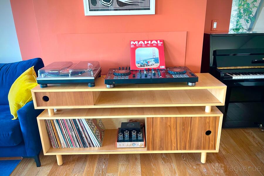 This modern video podcast studio is tucked away in a stylish home in the Silver Lake Hills, offering breathtaking views, including a glimpse of the Hollywood sign. The studio is fully equipped to record and live stream content for up to four people simultaneously, making it ideal for professional podcast productions or live broadcasts.