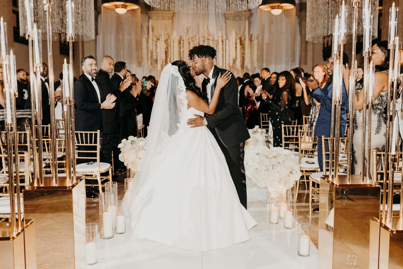 The Majestic is an expansive space within the venue, boasting high vaulted ceilings, ornate columns, and detailed arches that exude a classic, historic charm. The room features warm lighting that can be customized to create various atmospheres, from intimate to festive. Intricately designed with decorative ceilings and spacious layouts, The Majestic offers versatility for various event setups. The area, spanning approximately, 19500 square feet, accommodates both seated and standing arrangements, making it ideal for large-scale celebrations.