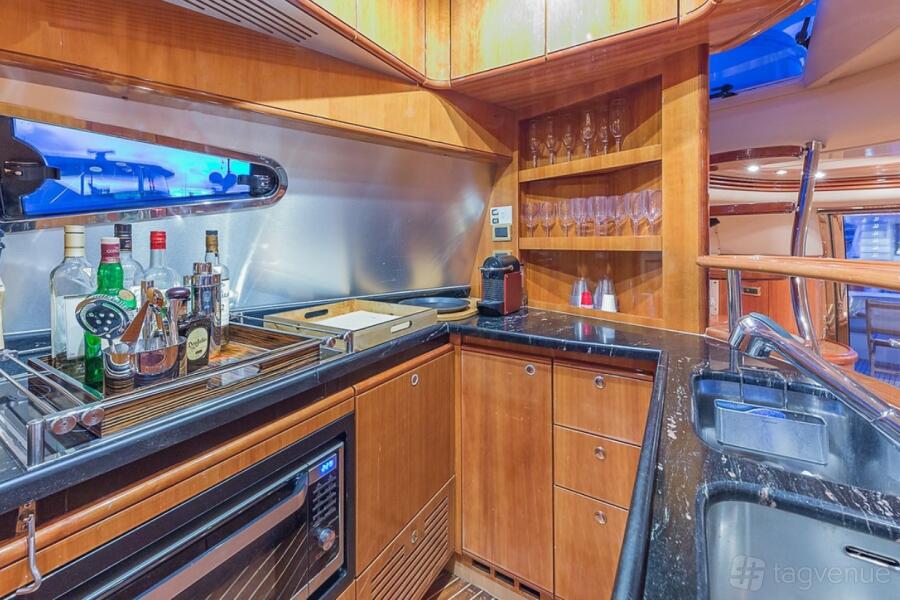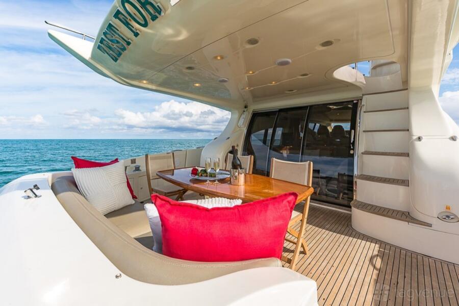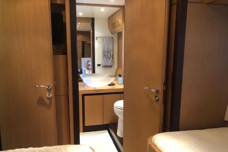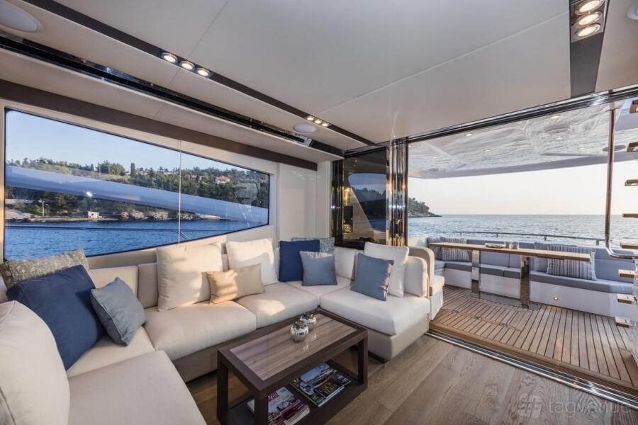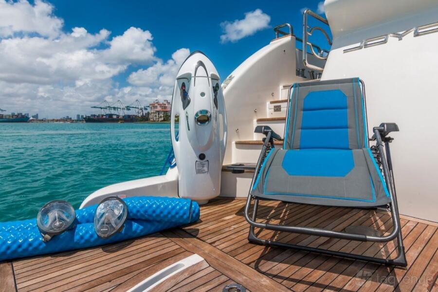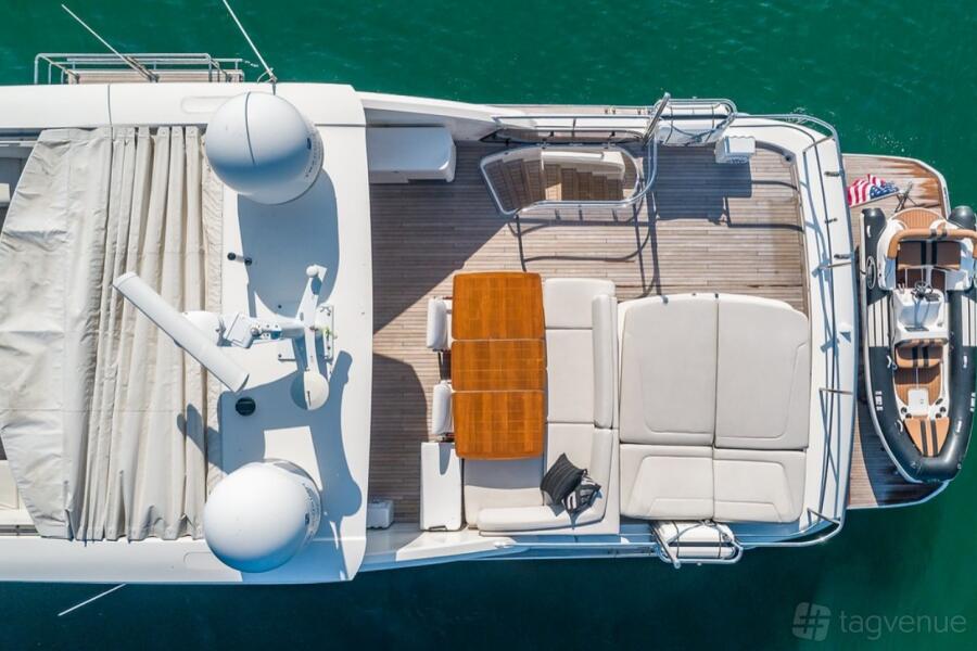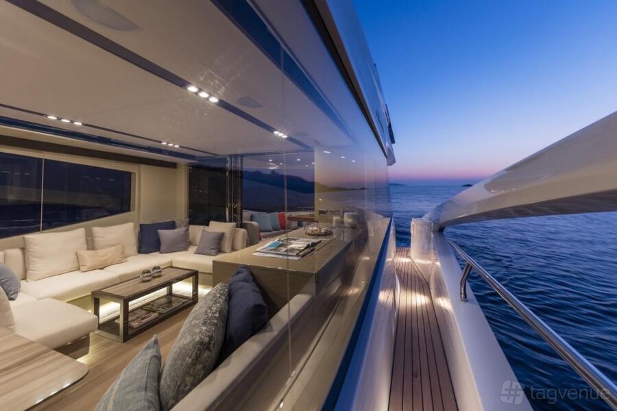 The eye-catching Austin Parker is a contemporary-styled Italian luxury yacht, ideal for family getaways. She features wrap-around main cabin windows and wide, protected walk-arounds from bow to stern, so your guests feel safe at all times. The large forward sunpad and swimming platform will keep your guests happy for hours!