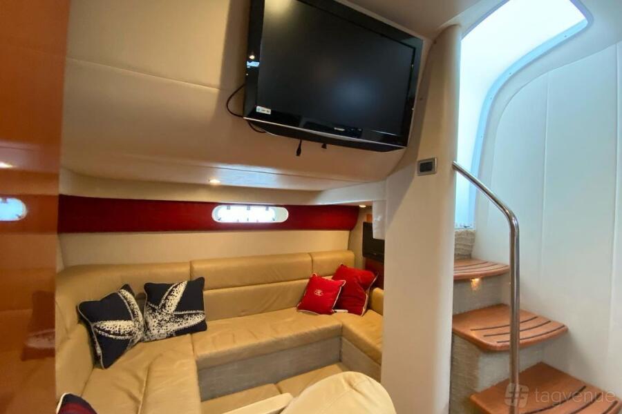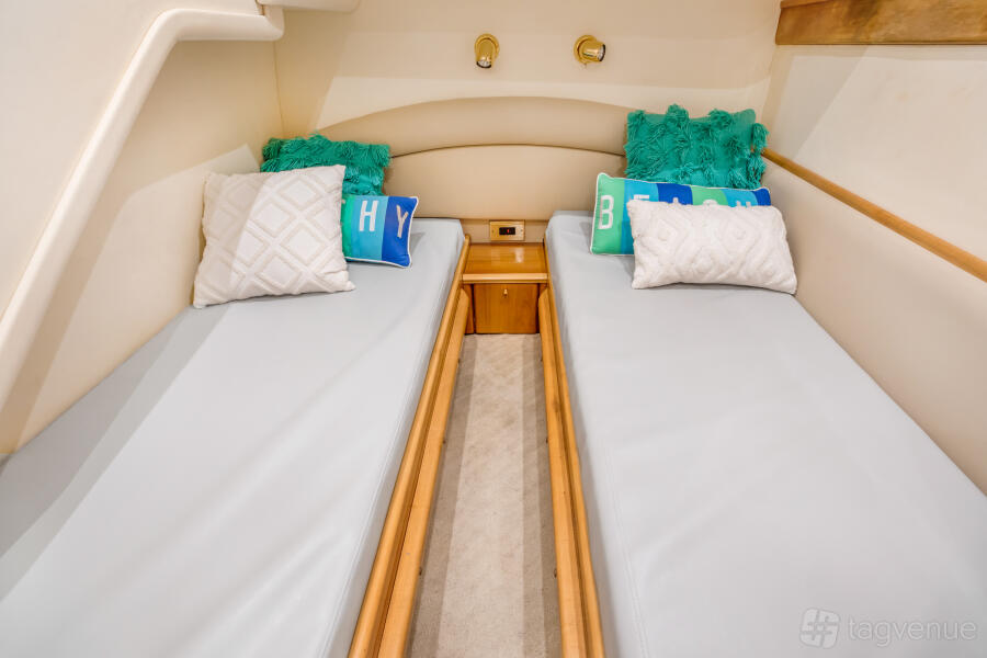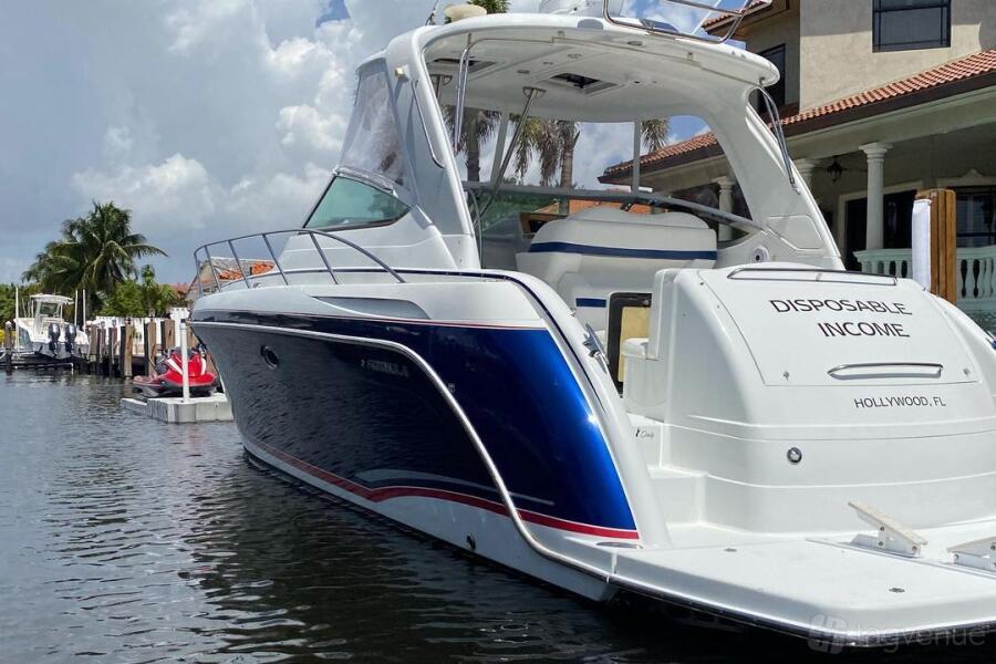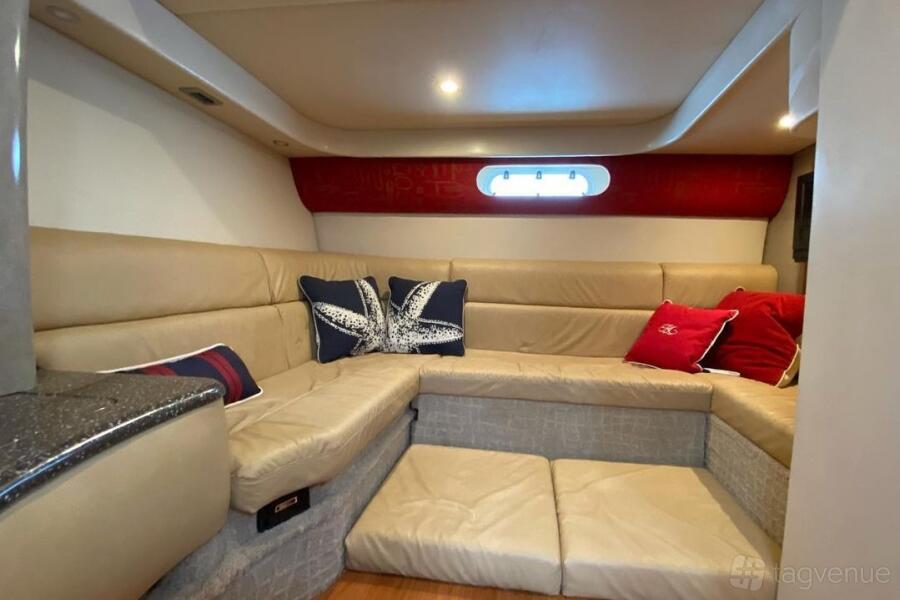 The Sea Ray's 56-foot length allows you to cruise across the water. Sea Ray 56' can accommodate 13 guests and is available overnight. It has 2 beds and one bath. Gas, ice, water, and soda are available, also a floating mat. For rent with a crew of a captain and mate. Let's hire our boat for an adventurous trip. This yacht is available for a variety of different occasions.
