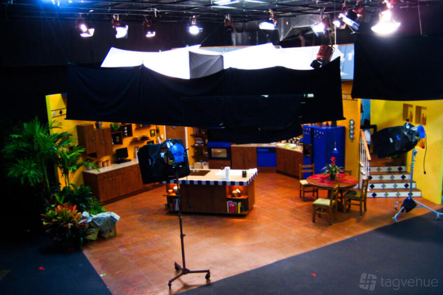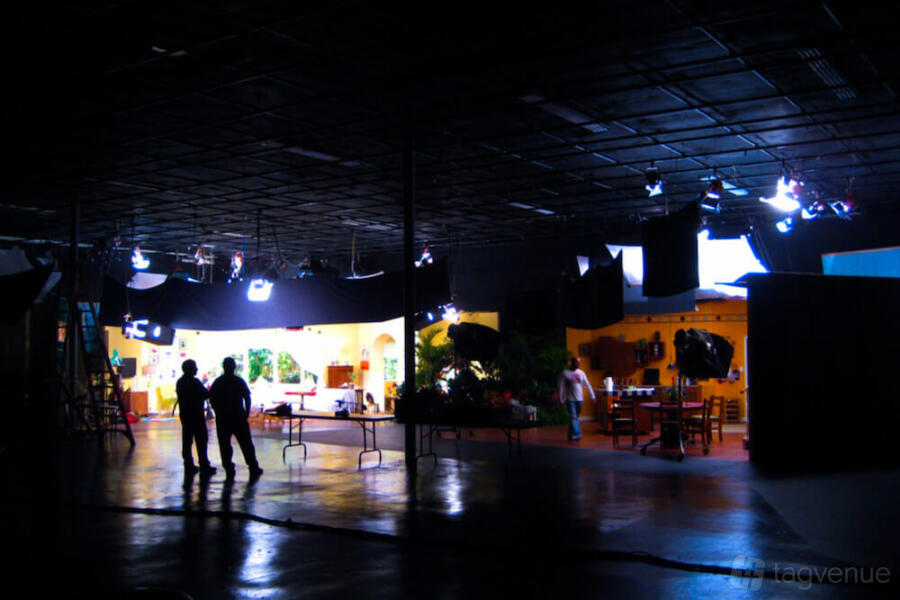 With 3 large sets already located in Stage D, it is sure to accommodate your production needs. A very large talent & crew area that is commonly used for any catering needs as well. A Makeup room is located adjacent to Stage F, right in the talent support area and with a seating area. A very large talent & crew area that is commonly used for any catering needs as well.