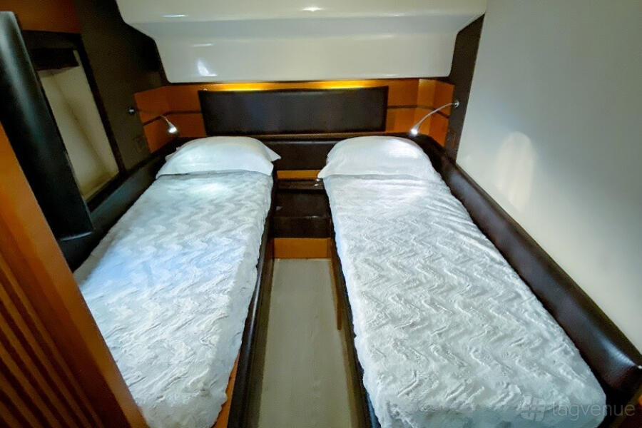 Venturing downstairs, this mid-sized yacht unfolds into a haven of indulgence. The master stateroom, V-berth, and twin single guest cabin beckon with sumptuous comfort, each exuding its distinctive charm. Multiple ensuites/heads add an extra layer of convenience and privacy, ensuring that every guest experiences the pinnacle of luxury
