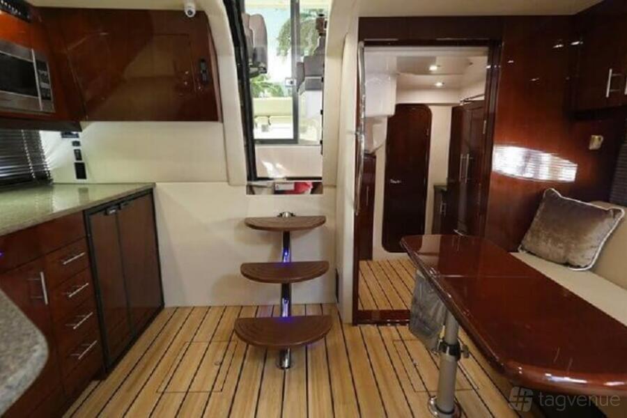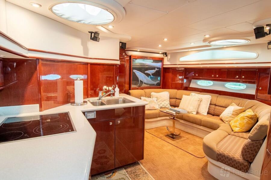 The galley, a beautifully designed culinary haven, stands as a testament to the yacht's commitment to excellence. Equipped with a cooktop, conventional oven, refrigerator, freezer, sink, and ample countertop space, it caters to the needs of both the casual snacker and the culinary enthusiast.