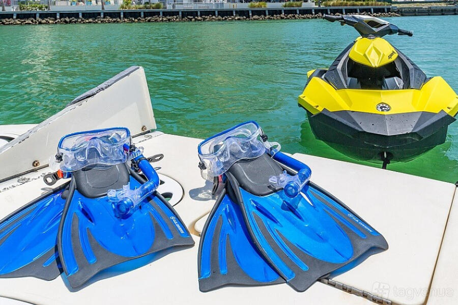 For those with a love for the water, the stern swimming platform is the ultimate destination, offering ample space for you and your guests to revel in aquatic enjoyment throughout the day.