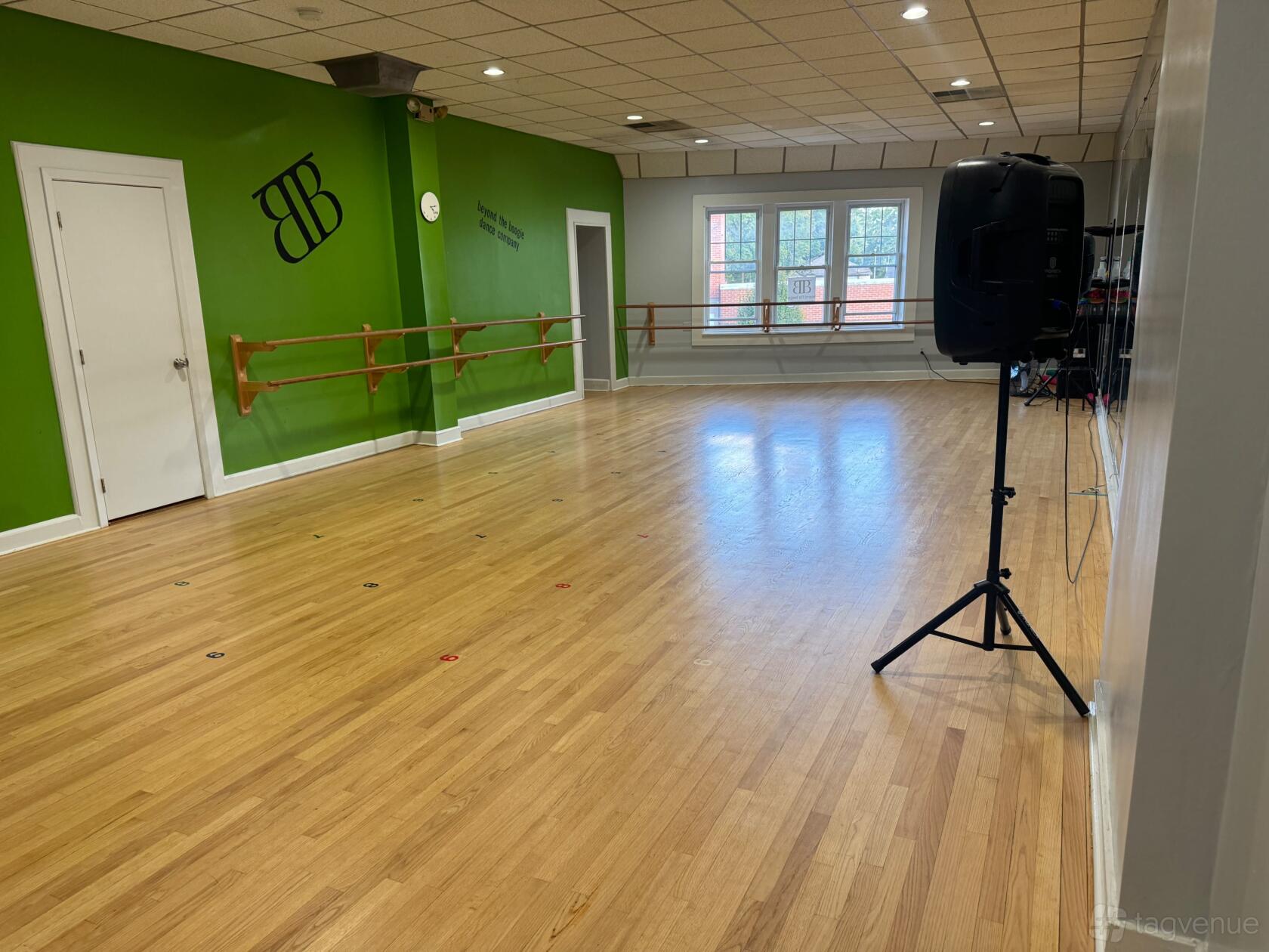 There’s also a stereo system that supports Bluetooth. The space is great for private rehearsals, movement classes, or small creative meetings.