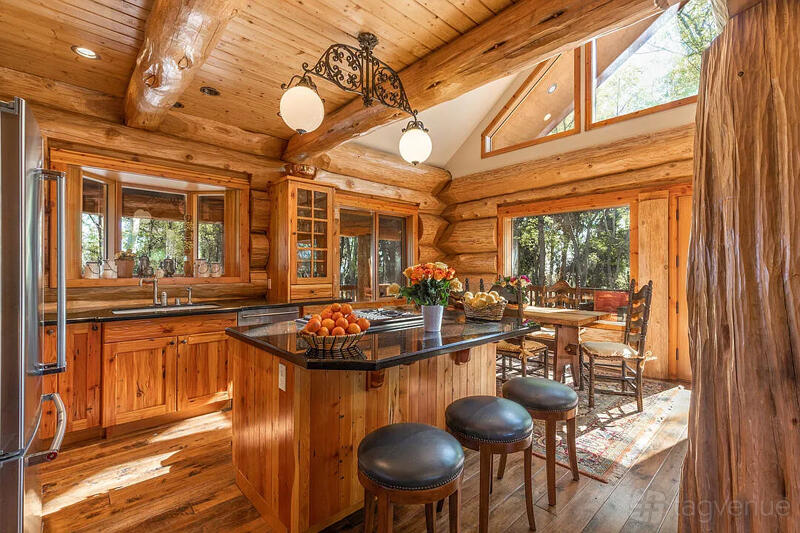 At the heart of this pastural haven lies a stunning Canadian cedar log cabin-inspired main home, boasting three bedrooms, two bathrooms, and 1,950 square feet of luxury living space. The main home presents endless options for entertaining, with bright living spaces adorned with hardwood floors, vaulted wood-beamed ceilings, and balcony terraces that frame breathtaking valley views.