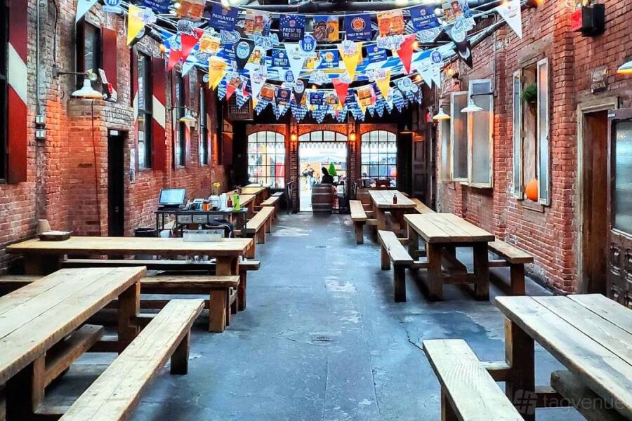 Our beautifully decorated bar room and beer halls were converted from what was once a functioning spice factory – the combination of industrial charm and old-world adornments provides a warm communal environment perfect for any wedding reception, rehearsal dinner, birthday, holiday, or company party.