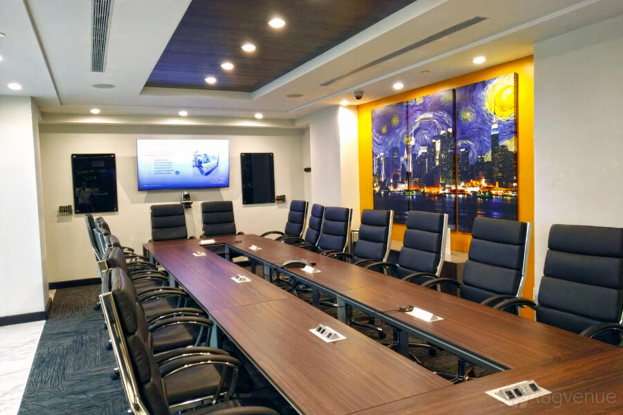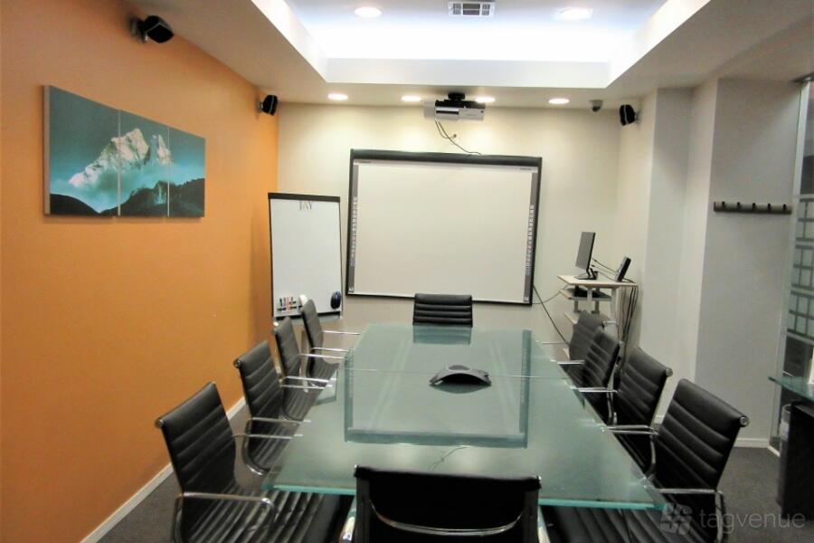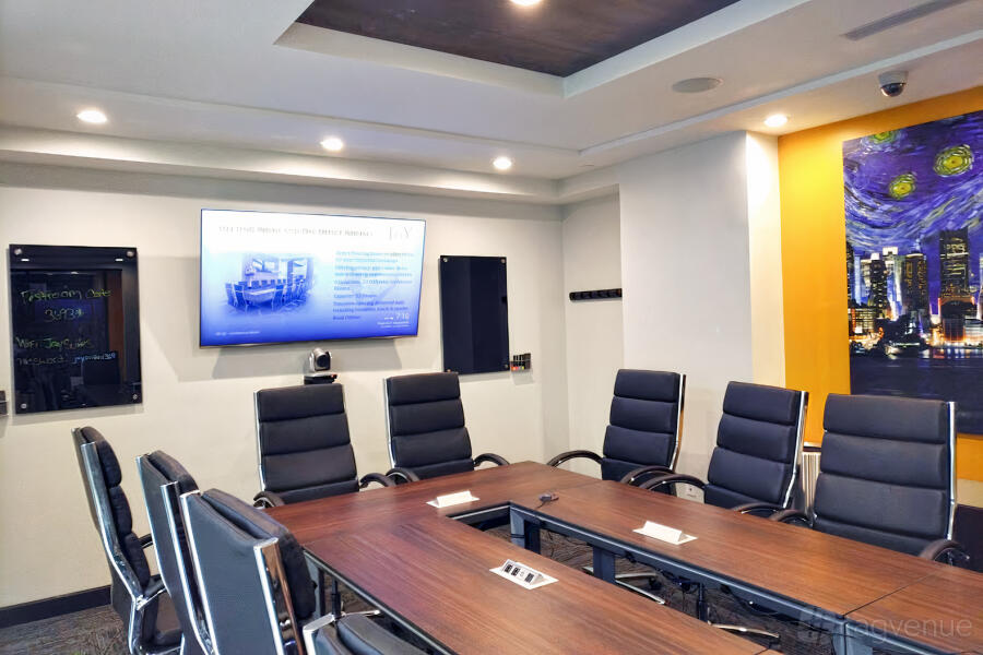 3rd floor is a perfect meeting room with all the needed features. It has a modern, frosted glass conference table, ergonomic black leather executive designer chairs, electrical receptacles, VoIP HD teleconferencing with microphones, and advanced audio control with in-ceiling speakers. Catering is available.