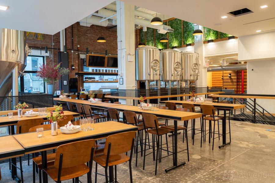 Torch & Crown Brewing Company, a luminous and spacious venue in Lower Manhattan, is the epitome of urban chic and versatility. Located at 12 Vandam Street in the SoHo district, it offers a bright and airy setting that caters to a diverse range of dining experiences. Architecturally, the space blends industrial elements like exposed brick and steel with a contemporary flair, creating an atmosphere that is both stylish and welcoming. The decor is a harmonious mix of modern fixtures and rustic charm, complemented by natural light that floods the area, enhancing the overall ambiance.