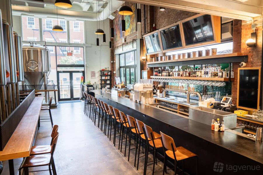 The venue is thoughtfully segmented into various areas, each designed to accommodate different group dynamics and event needs. Guests can choose from large communal tables for a more sociable experience, semi-private spaces for intimate gatherings, or fully private areas for exclusive events. The Brewery and restaurant are equipped with state-of-the-art brewing facilities, visible to guests, adding an intriguing element to the setting. The equipment and amenities are top-notch, ensuring a seamless experience whether it's for casual drinks, pre-fix meals, or the signature large-format feasts featuring whole roasted pigs.