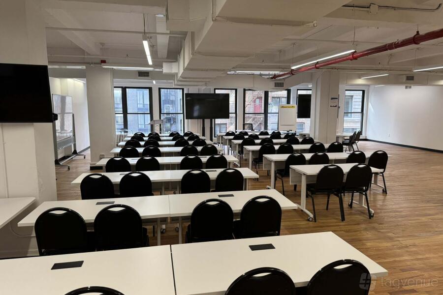 Our seminar room in Flatiron offers space in one of NYC’s hottest and most happening neighborhoods. It is very suitable for any type of meeting, conference, seminar, presentation or corporate party, if you are part of a big and traditional company. The atmosphere is extremely comfortable, yet the professional vibe is still the point of focus. Seminar Room A is a part of of our larger event hall space.