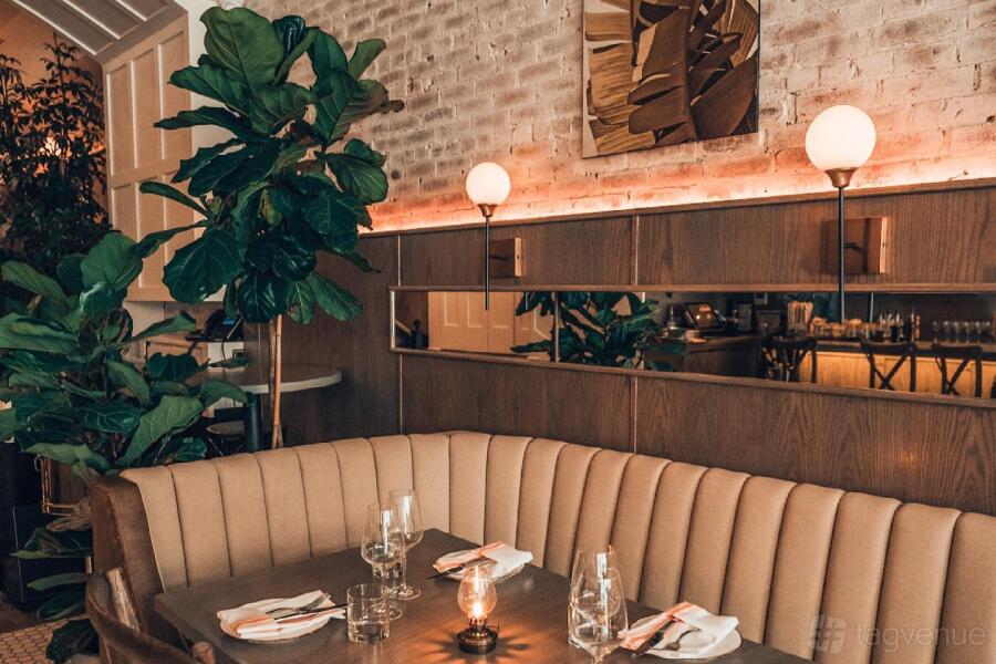 Inspired by the coasts of Spain and the Caribbean, the white-washed brick, green hues, weathered grey wood and tropical foliage that accent the space and conveys both the warmth of a traditional Tasca and the breezy elegance of contemporary, coastal Caribbean restaurant. Tasca seats 18 outside, up to 200 guests indoors.