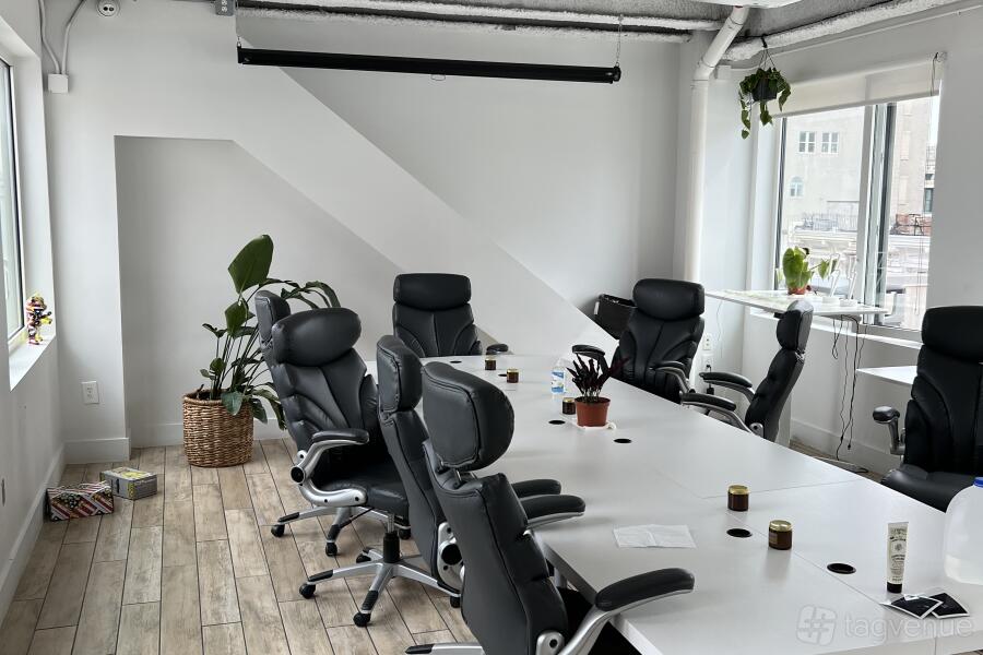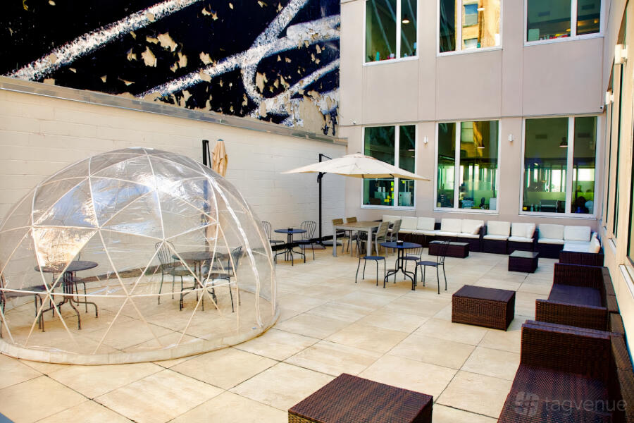 The indoor space on the 7th floor of our building is a 600 square foot open layout with windows facing south and east in Lower Manhattan. It accommodates 25 people if seated in a conference type set-up, and around 50 people if standing. Equipped with a projector and screen for any A/V needs, this space is perfect for anything from presentations to informal mixers.