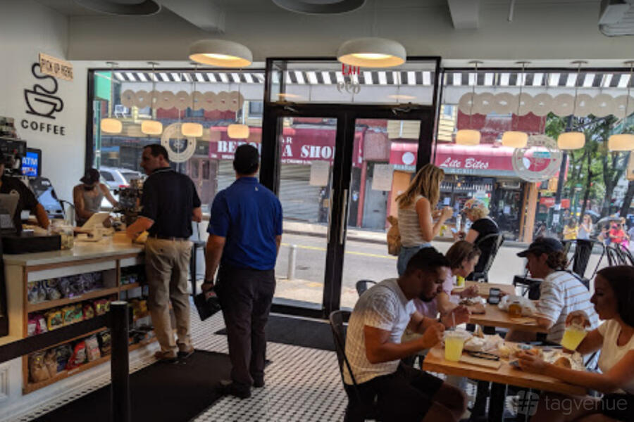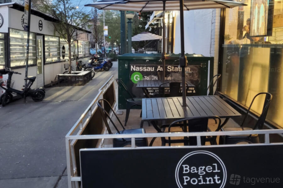 Informal spot serving diverse options of hand-rolled bagels & cream cheese all day. The bright venue can accommodate a total of 50 guests, in its inside and outside areas. Located off the Nassau Ave stop on the G Train, Bagel Point brings joy bite by bite to Brooklynites.
