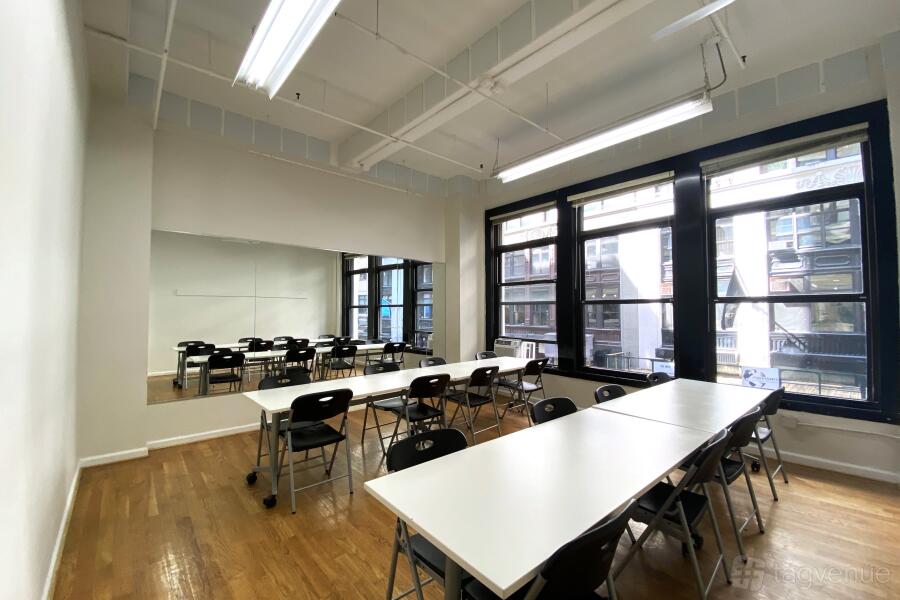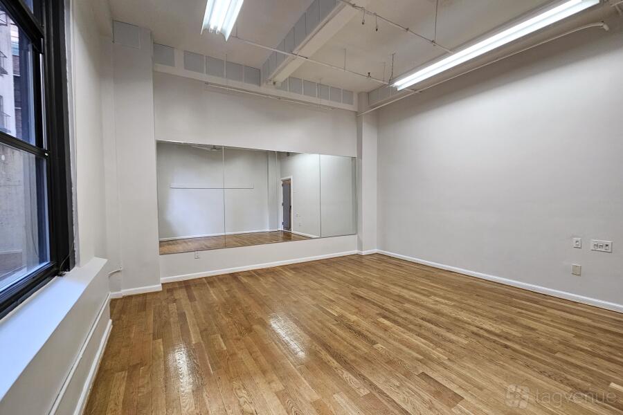 We are located in a doorman building, with staff on site. Studios feature oversized windows in exterior facing studios, 12+ foot ceilings throughout, hardwood floors, and access from dedicated extra-wide hallways. The floor has three bathrooms (1 ADA accessible), it is also possible to book a bathroom for production shoots.