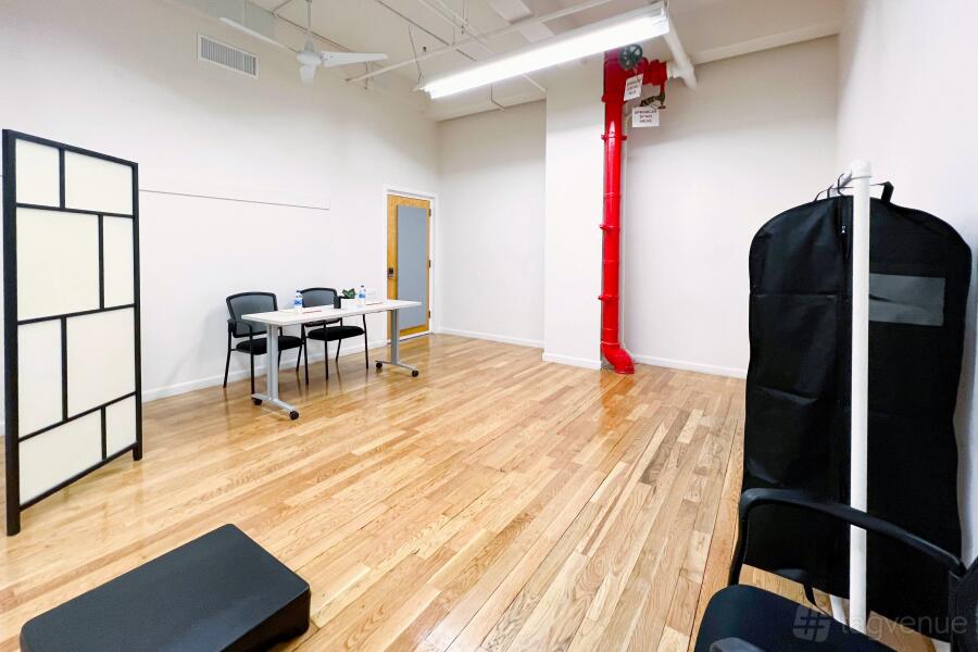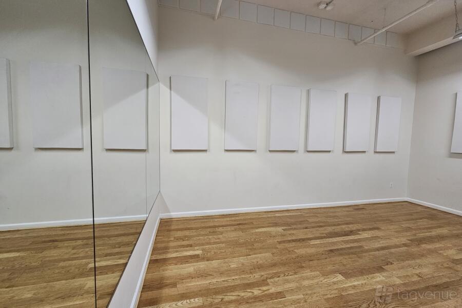 Space 3-2 is a 300 sq ft interior studio with an energizing air that includes warm wooden floors and a mirrored wall. It's mirror and simple design make it perfect for exercise groups, dance classes, and workshops.